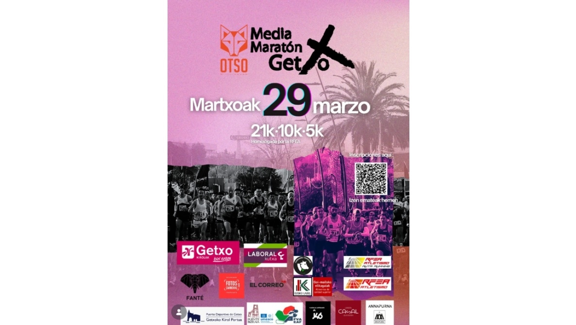 Informazio gehiago Martxoaren 29an Getxoko Maratoi Erdia egingo da 09:00etan eta Fadurako kiroldegian irtengo da. 5 km-ko eta 10 km-ko lasterketak 11:30ean. El día 29 de marzo se celebra la Media Maratón de Getxo a las 9.00 h. con salida en el polideportivo de Fadura. Carreras de 5 kms. y 10 kms. a las 11.30 h.