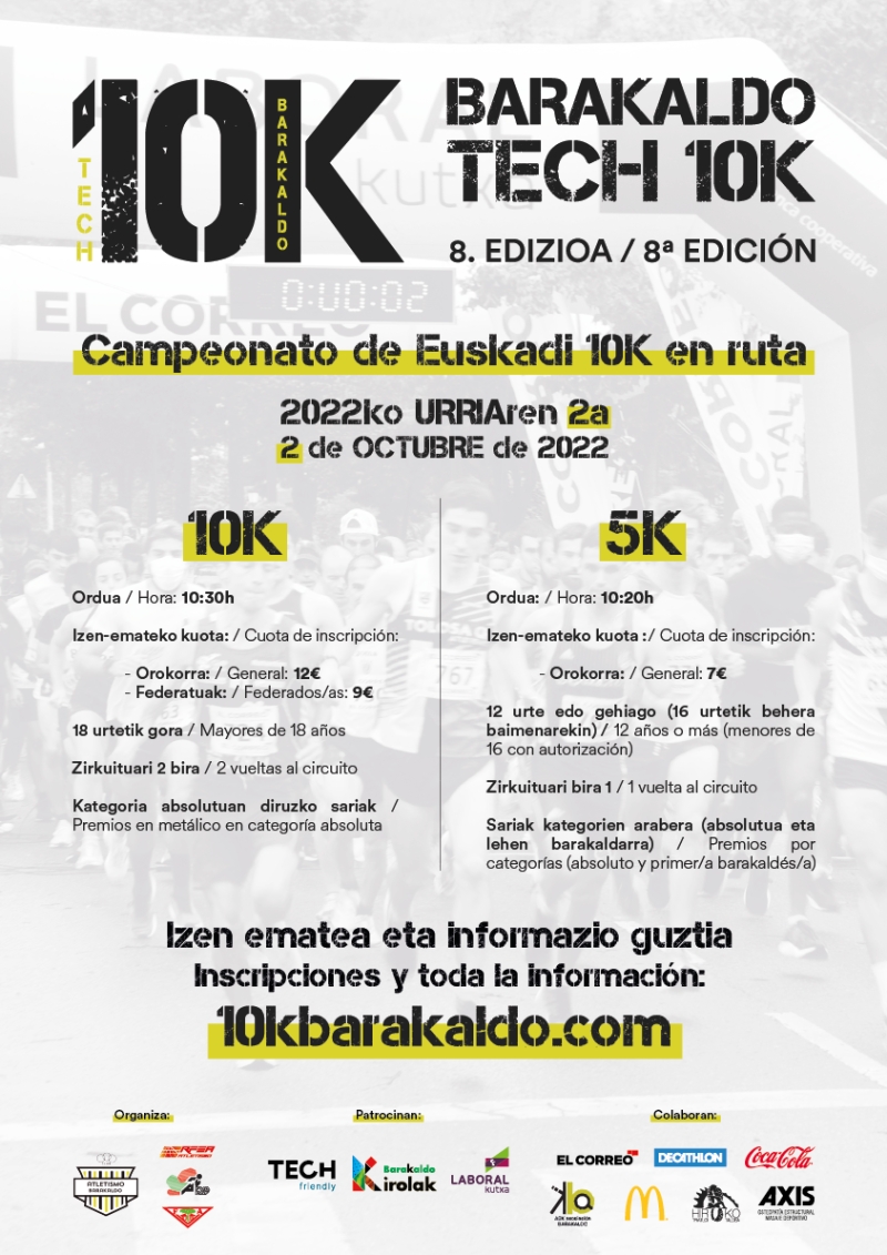 Urriaren 2an, igandea, VIII. TECH 10k Barakaldo ospatuko da, Azkueko Erronda kaleko 25ean, 10: 30ean.